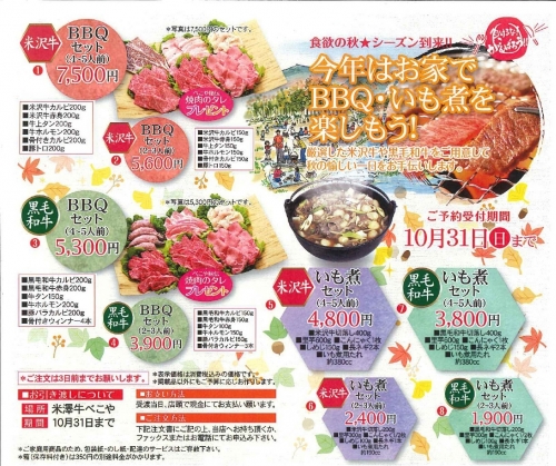 2021年09月03日 米澤牛べこやから秋のお得セットのご案内