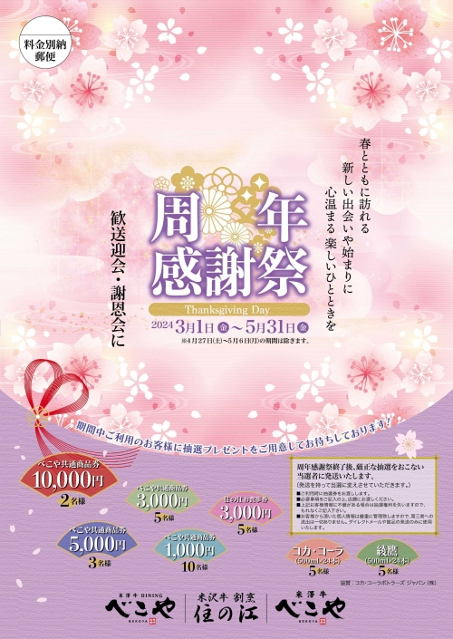 2024年03月01日 期間限定特別*周年祭プラン*のお知らせ